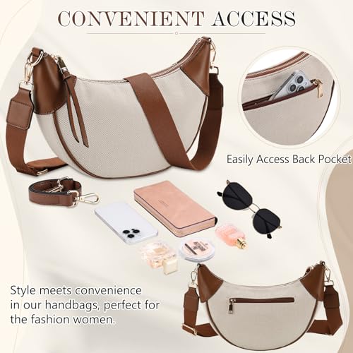 VX VONXURY Shoulder Bag for Women,Medium Canvas Crescent Crossbody Saddle Purse with Zipper Closure,Fashion Underarm Handbag 5