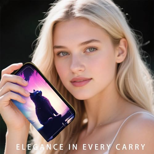 RFID Blocking Women's Wristlet Purse - Detachable Wrist Strap, Compact Foldable Design with 12 Card Slots & Zip Pocket Wallet for Travel,Gym,Black Cat 4