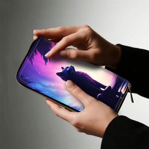 RFID Blocking Women's Wristlet Purse - Detachable Wrist Strap, Compact Foldable Design with 12 Card Slots & Zip Pocket Wallet for Travel,Gym,Black Cat 2
