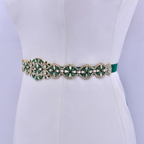 ECYC Rhinestone Bridal Belt, Fashion Green Crystal Wedding Dress Belt Rhinestone Ribbon Belts for Women 4