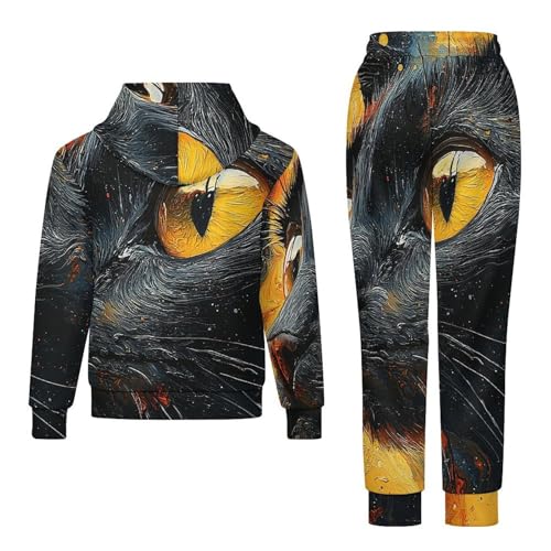 Boy's Girl's Hooded Tracksuit Pullover Sweatshirt Jogging Pants Sweatsuit, Black Cat Dark Night Psychedelic