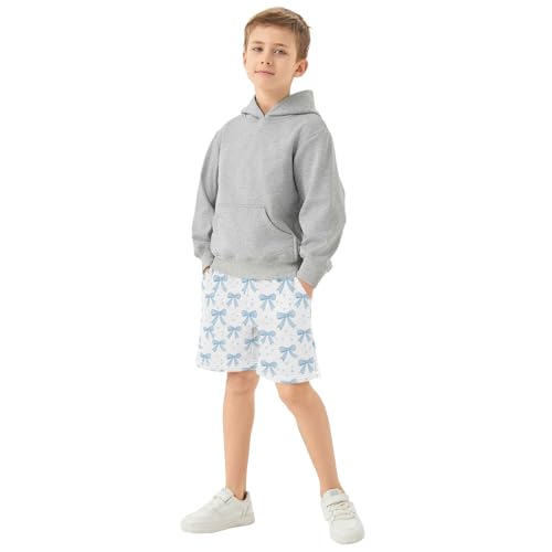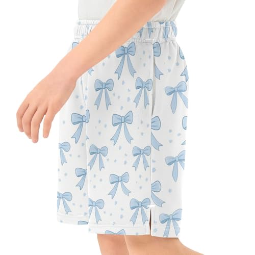 Blue Bows Athletic Shorts with Zipper Pockets, Youth Boys Athletic Running Shorts for Summer 6