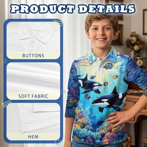 • BOYS GOLF SHIRT NOVELTY DESIGN: The 1/4 button design is accessible for wearing and temperature control, making it both fashionable and practical. The shirt is neither too tight nor too wide, allowing your boy to move freely