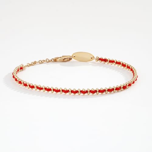 Item display length: 7.48 inchesMaterial: Nylon CopperMetal type: CopperClasp type: Lobster ClawChain type: Bead ChainGem type: No gemstoneElegant Design and Craftsmanship This 18K gold plated link bracelet blends classic and modern styles. It features a hand-braided string interwoven with a double-row bead chain, creating a one-of-a-kind look. Each bracelet is meticulously crafted with attention to detail, making it a versatile accessory for any occasion.Adjustable Length for a Perfect Fit The bracelet measures 8.1inches (20.5 cm) in total length and includes two adjustable positions. This allows for three different sizes, ensuring a comfortable fit for your wrist, whether for daily wear or special events.Copper and Nylon Materials Made with 18K gold plating over a double-row copper bead chain, this bracelet is built to last. The hand-braided string enhances durability and comfort, making it an ideal gift for birthdays, anniversaries, and other special occasionsSecure Lobster Clasp The bracelet features a lobster clasp closure, offering ease of use and reliable security. This design ensures the bracelet stays securely on your wrist, allowing you to wear it confidently during any activity.Customer Satisfaction Guaranteed We are committed to providing each customer with the highest standard of customer service and a 100% satisfactory shopping experience. If you are not completely satisfied with your purchase, simply contact us, and we will resolve your issue within 24 hour. Perfect for everyday use. excellent materials and excellent craftsmanship ensure long-lasting durability.
