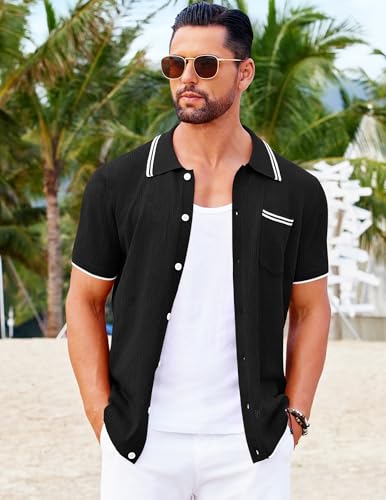 COOFANDY Men's Knit Button Down Shirt Vintage Polo Shirts Short Sleeve Summer Beach Shirts