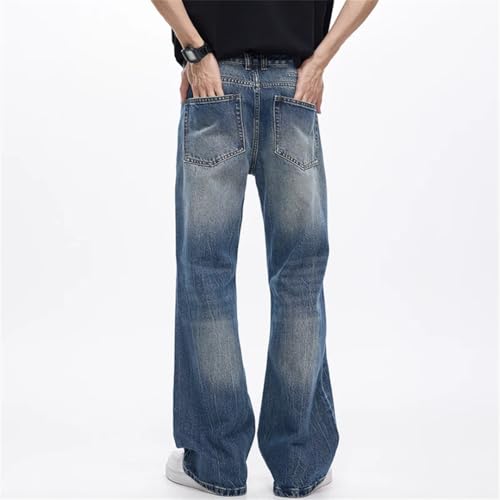 • Details: These men's flared jeans are robust, equipped with zipper placket, metal stud buttons, reinforced reinforcement and riveted front hand pockets for added durability