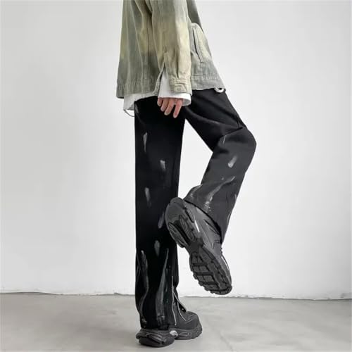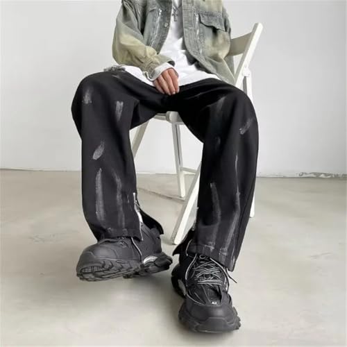 • CASUAL DESIGN: Vintage distressed, wide leg, loose fit, fashionable and casual,wide leg pants men; Zipper fly and button design, hassle-complimentary to fit, creating a casual and attractive silhouette; Multiple pockets are easy to put your cell phone