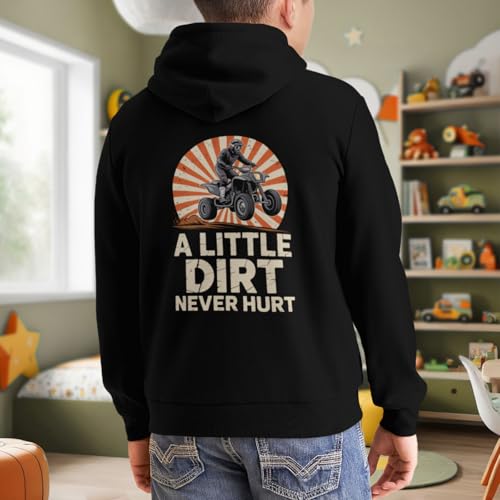More information about Kids Retro Quad Bike A Little Dirt under no circumstances Hurt Boys Girls Lightweight Kangaroo Pocket Fleece Hoodies