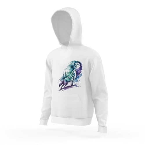 popular ! Kids Watercolor Moon Wolf Howling Boys Girls Lightweight Kangaroo Pocket Fleece Hoodies
