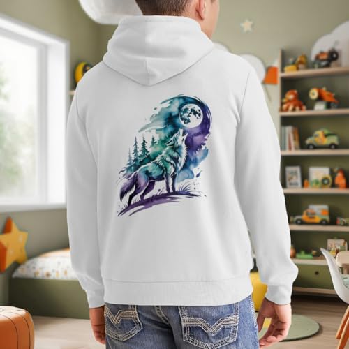 Kids Watercolor Moon Wolf Howling Boys Girls Lightweight Kangaroo Pocket Fleece Hoodies 7