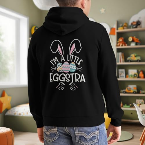 Kids Retro I’m A Little Eggstra Funny Happy Easter Boys Girls Lightweight Kangaroo Pocket Hoodies 3