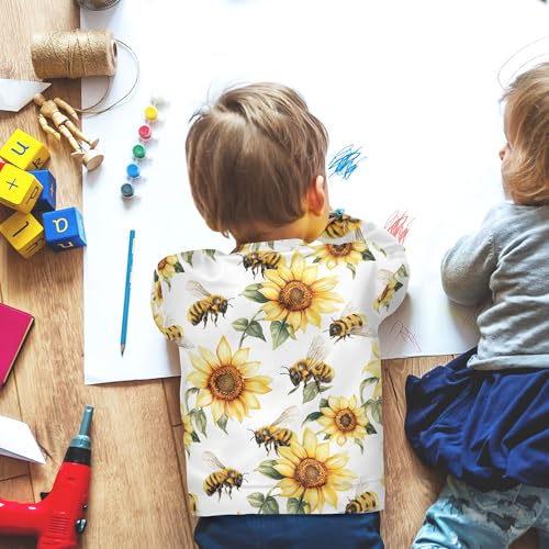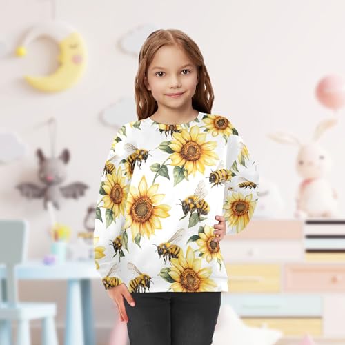 JUNZAN Cartoon Cute Bees Sunflowers White Little Boys Sweatshirt Hoodie Crewneck Fall Tops Shirts Sports 4T