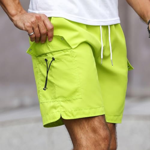 Mens Cotton Linen Shorts Workout Running Sport Beach Summer Pant Drawstring Loose Fit Casual Trousers with Pocket