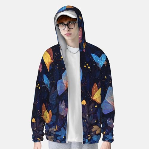 • Full Zipper Closure: Night Butterflies Sun Shirt Outdoor lightweight full zip hoodie jacket, with long sleeve and a hood to protect you from ultraviolet rays and long-term skin damage.that complements both casual and athletic wear.