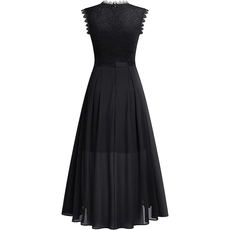 More information about Women's Black Dress Lace Dress Party Dress Chiffon Lace Ruched Crew Neck Sleeveless Midi Dress Winter Dress Wedding Guest Black Pink Summer Spring