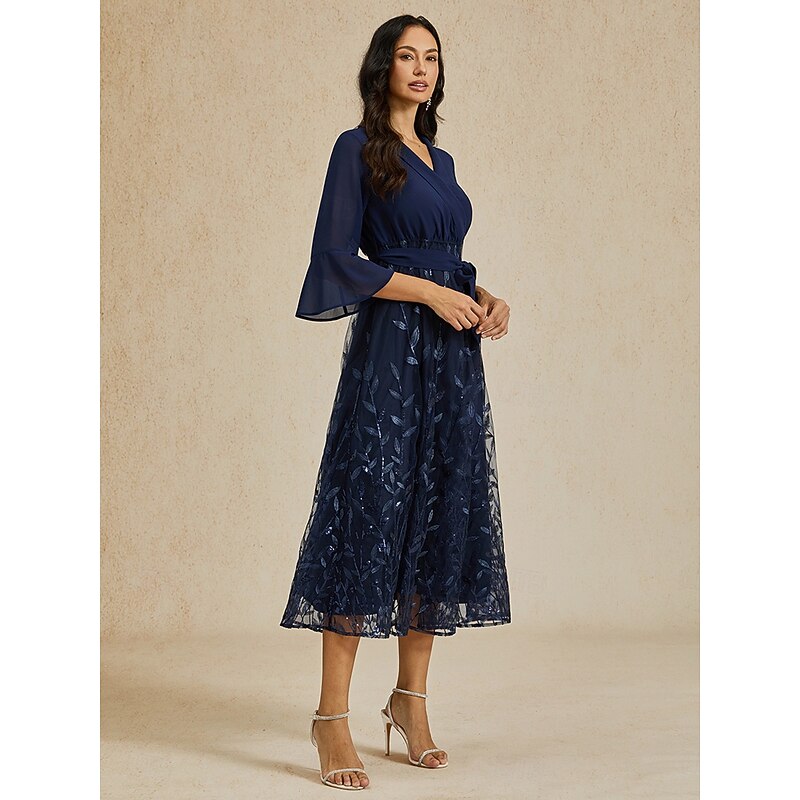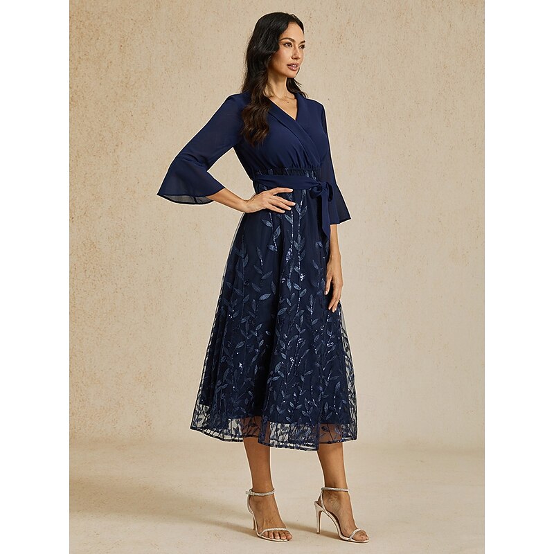 This Women's Tea Length A Line Dress Tulle Dress Elegant Party Cocktail Solid Color 3/4 Length Sleeve V Neck Navy Blue Summer Spring combines elegant design with practical functionality. Every detail has been carefully considered to ensure you get the foremost possible experience. The supreme construction means this product will serve you well for years to come.