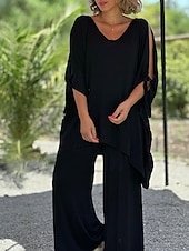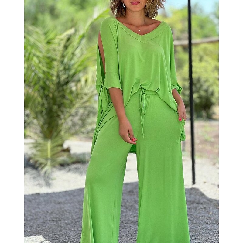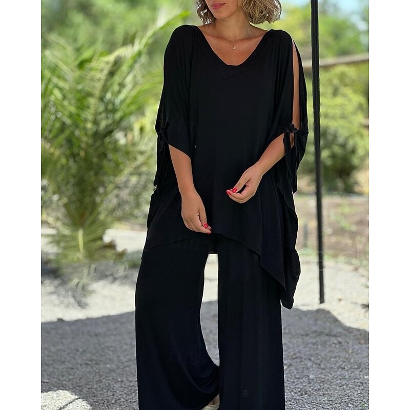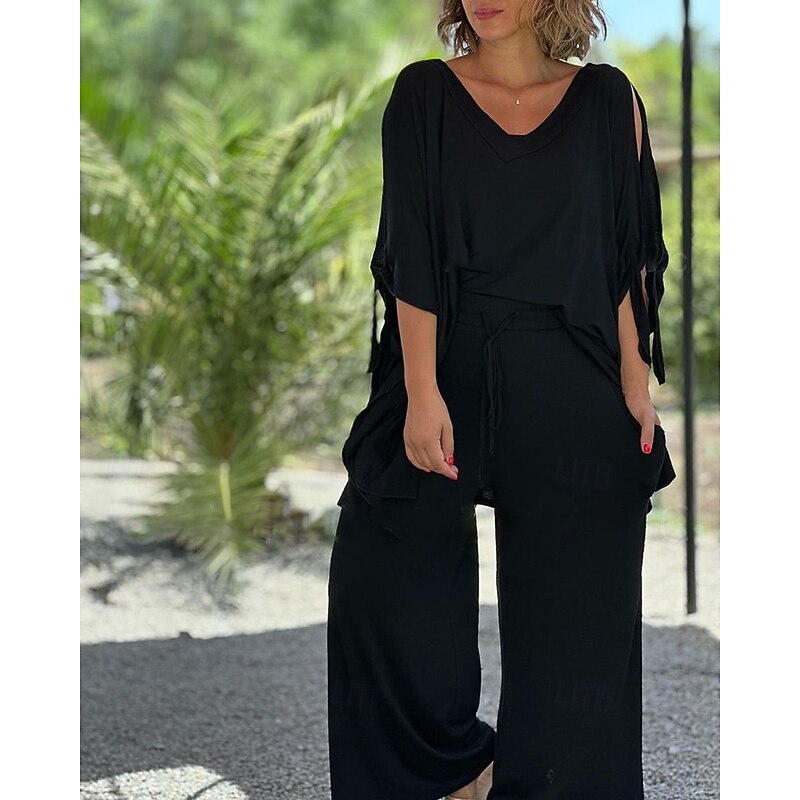 This Women's Active Fashion Blouse Pants Sets Half Sleeve V Neck Solid Color Cut Out Holiday Casual Daily Black Blue Orange Summer Regular Fit combines elegant design with practical functionality. Every detail has been carefully considered to ensure you get the ultimate possible experience. The supreme construction means this product will serve you well for years to come.
