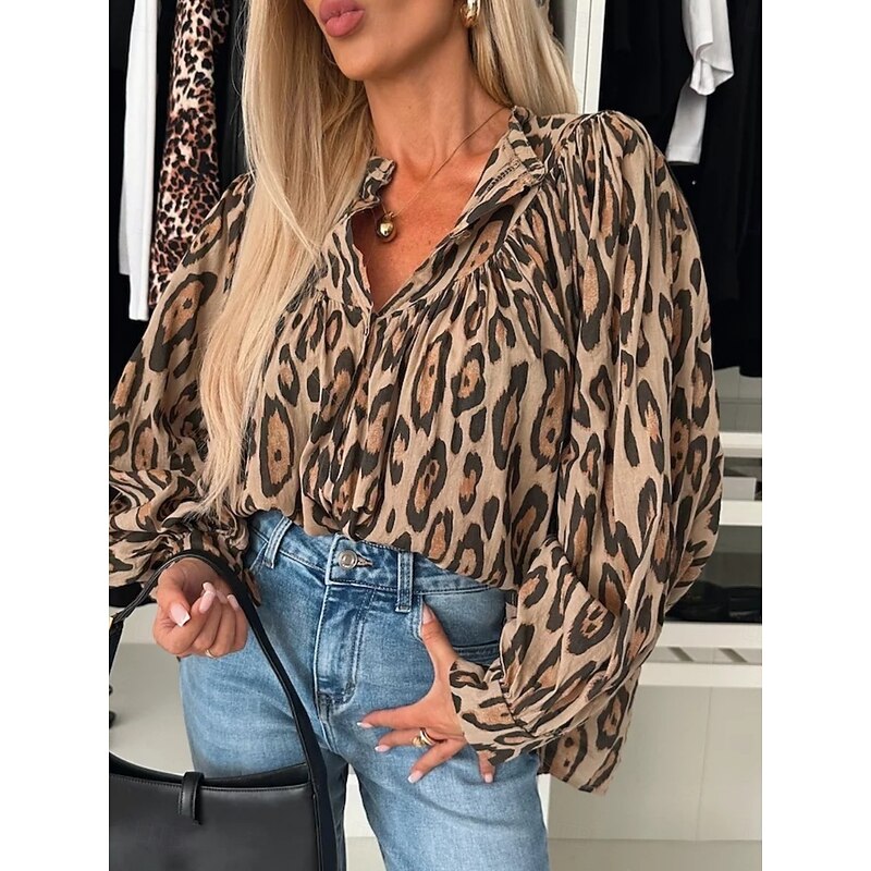 Why Choose Women's Shirt Blouse Geometric Casual Long Sleeve Turtleneck Regular Tops Daily Buttons Print White Yellow Fall Winter?
