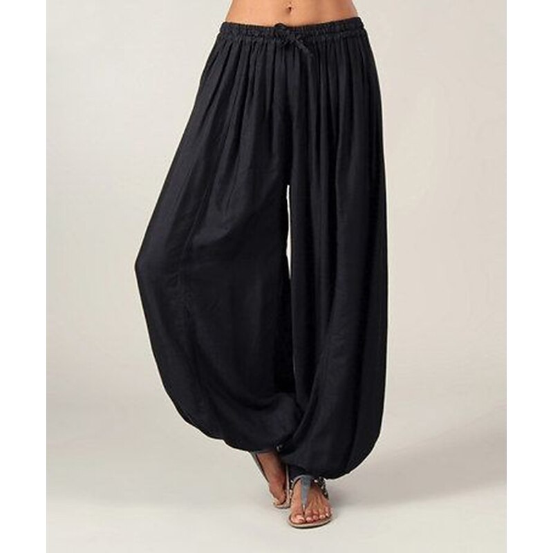 Women's Normal Wide Leg Chinos Pants Trousers Fashion Savannah Joggers Full Length Mid Waist Plain Drawstring Baggy Drop Crotch Comfort Micro-elastic Casual Weekend Black Pink Red Navy Blue