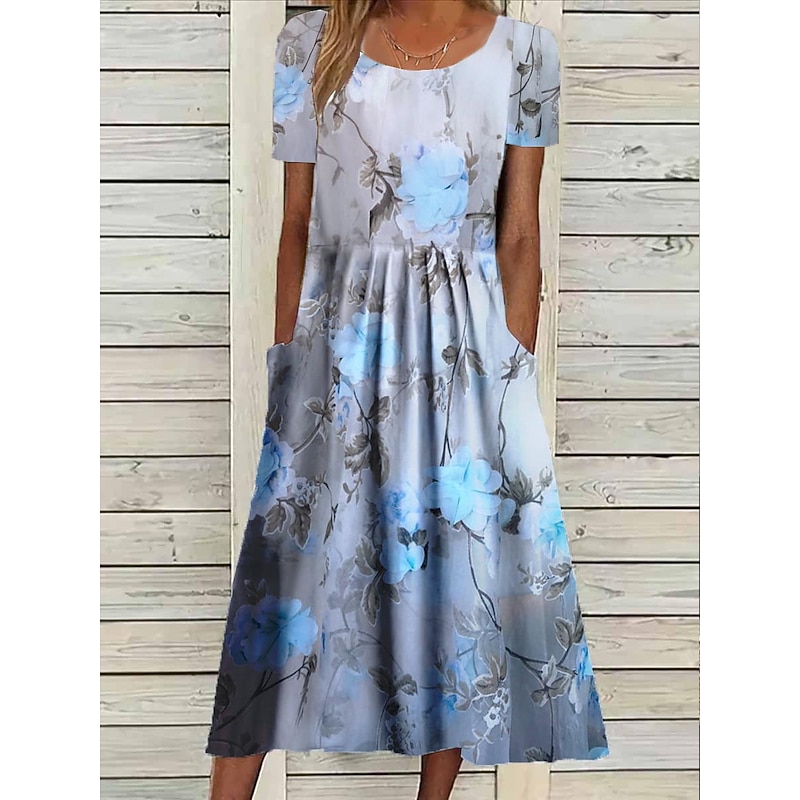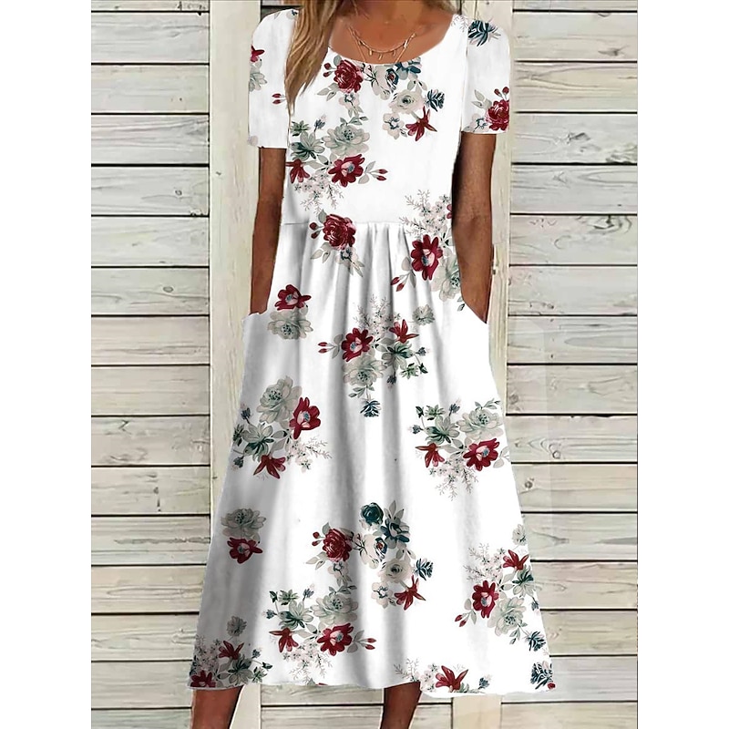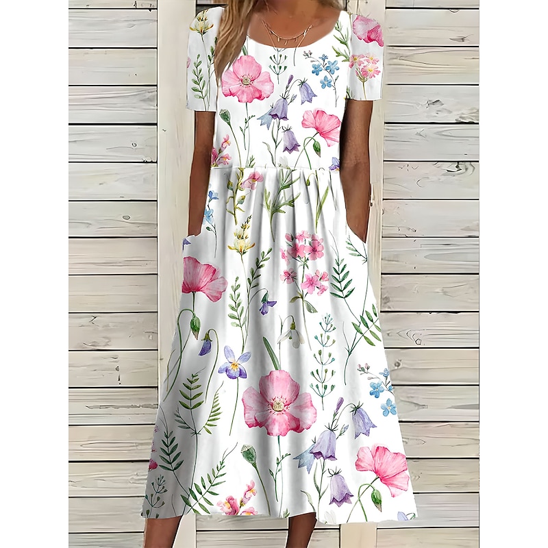 Women's Midi Dress Floral Pocket Print Crew Neck Daily Date Short Sleeve Summer Spring
