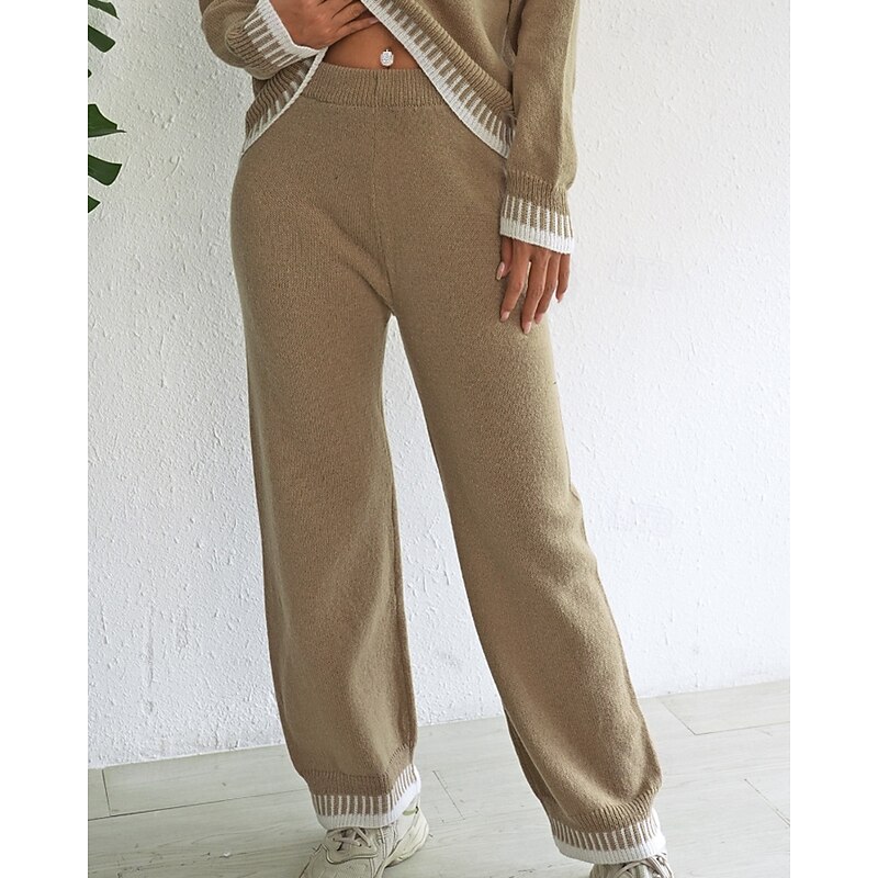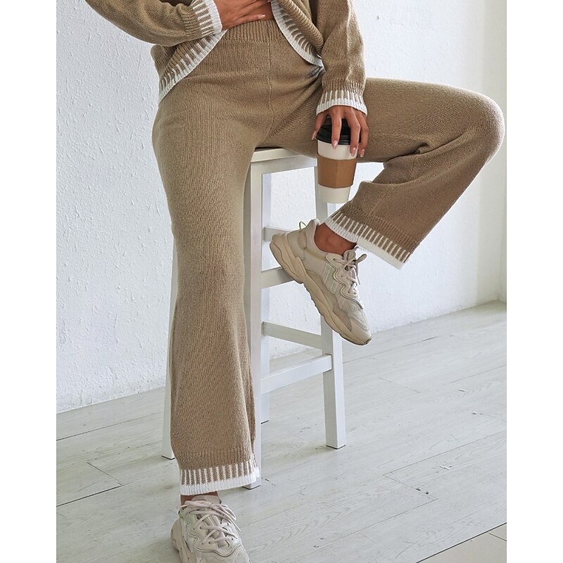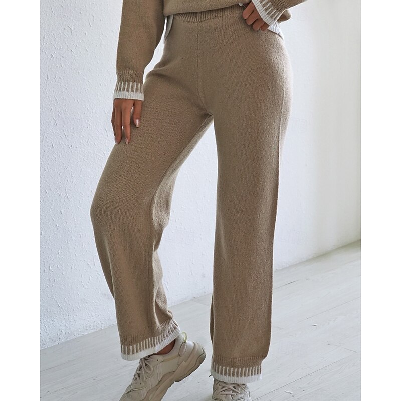 Why Choose Women's Wide Leg Slacks Streetwear Casual Full Length Natural Color Block Patchwork Elastic Waist snug Street Holiday Daily Wear Black Khaki Winter Regular Fit?