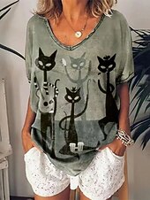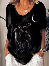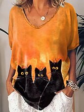 This Halloween Women's T shirt Black Cat Cat Vintage Casual Short Sleeve V Neck Regular Tops Daily Weekend Print Black White Orange Green Summer combines elegant design with practical functionality. Every detail has been carefully considered to ensure you get the top possible experience. The top-grade construction means this product will serve you well for years to come.