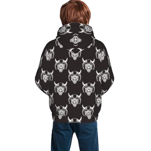 Vintage Devil Wearing Helmet Kids Pullover Hoodies Boys Sweatshirts Girls Athletic Clothes with Pocket