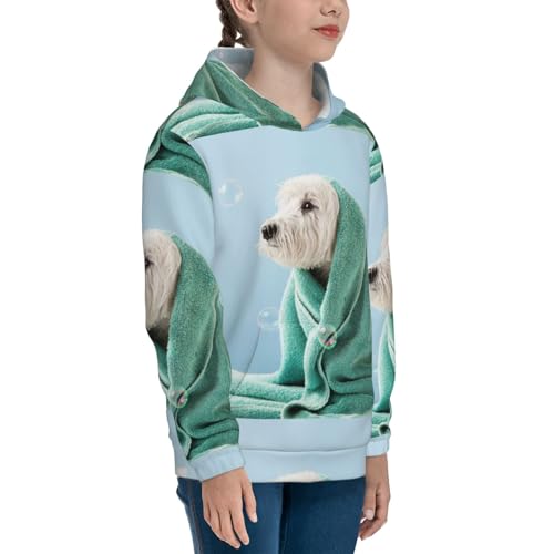 Dog Wrapped in Towel Kid Hoodies Boys Sweatshirts Girls Pullover with Pocket 6