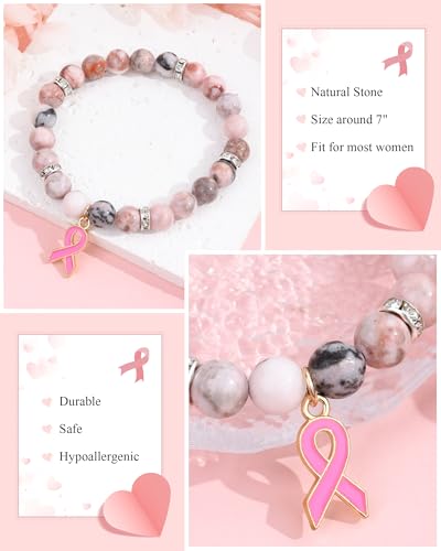 Breast Cancer Bracelets for Women Breast Cancer Awareness Bracelet Inspirational Encouragement Handmade Natural Stone Charm Beaded Gifts for Women Best Friend Sister 5