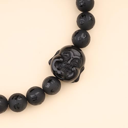 COAI Buddha Bracelet Six-Syllabled Sanskrit Mantra Onyx Obsidian Stone Beaded Bracelet 4