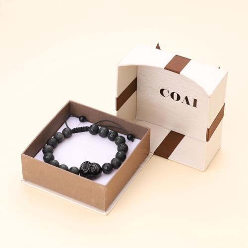 COAI Buddha Bracelet Six-Syllabled Sanskrit Mantra Onyx Obsidian Stone Beaded Bracelet 6