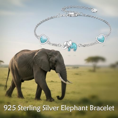 URONE Elephant Bracelet 925 Sterling Silver Turquoise Heart Elephant Bracelet Animals Jewelry Gifts for Women