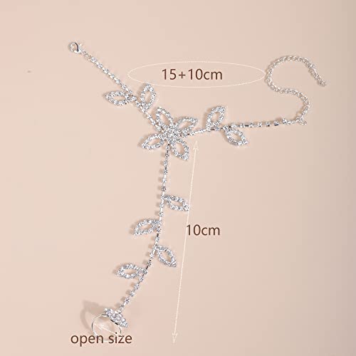 YERTTER Silver Flower Rhinestone Bracelet Finger Ring Link Bracelet Slave Link Bracelet Wedding Bridals Hand Chain 5