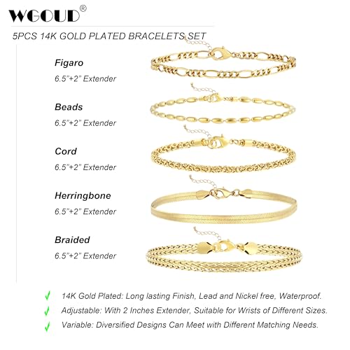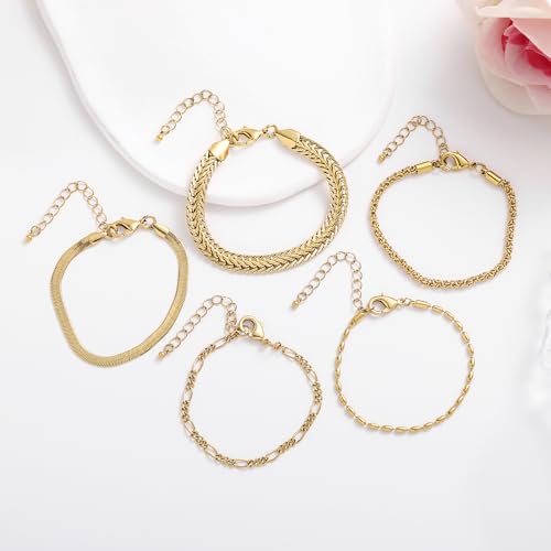 wgoud Gold Bracelets for Women Trendy, 14K Real Gold Plated Link Chain Bracelets for Women Waterproof, Adjustable Gold Stack Bracelet Set Jewelry Gifts for Women. 5