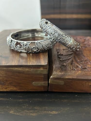 2 pc Indian Designer Fashion Handmade Traditional Ethnic Silver Oxidized Bollywood Kada Open Bracelet Bangles 1