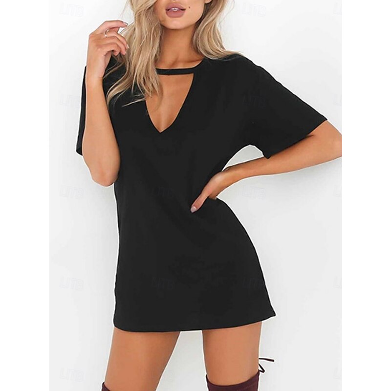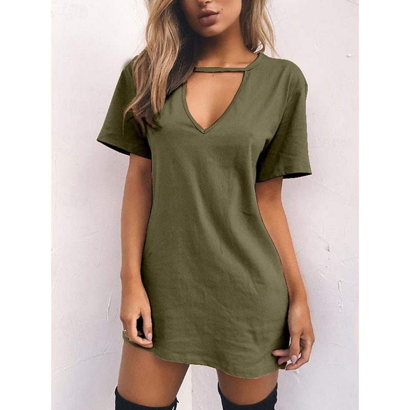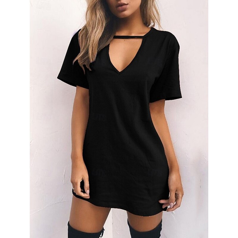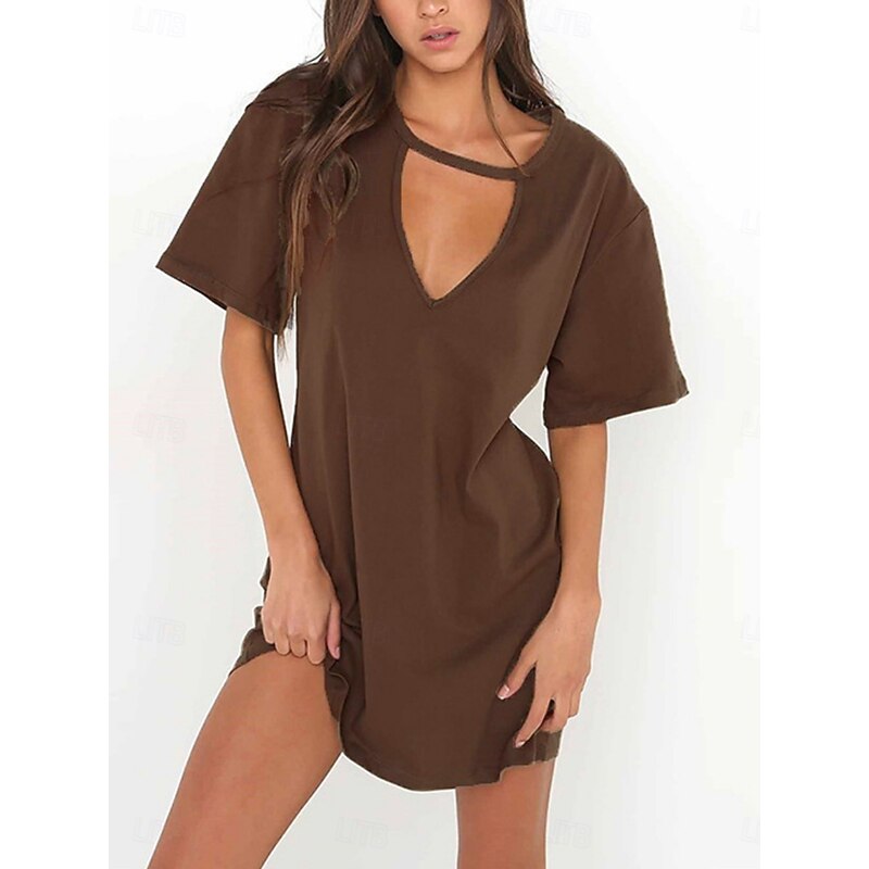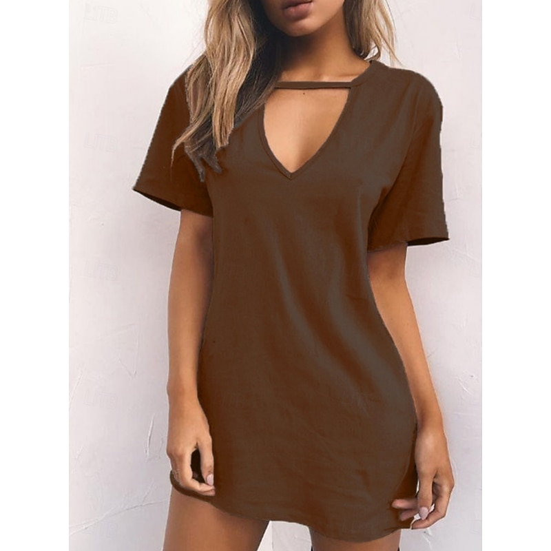 popular ! Women's Mini Dress T Shirt Dress Tee Dress Summer Dress Casual Daily Regular Fit Plain Short Sleeve V Neck Black White Brown Green Summer