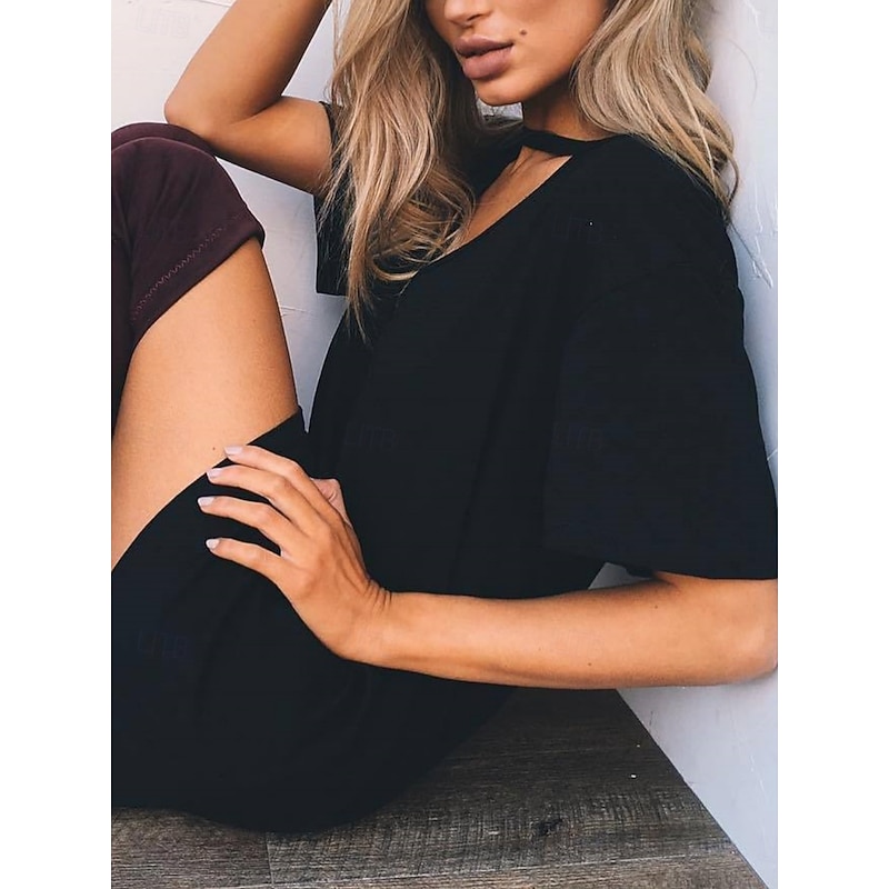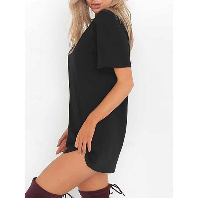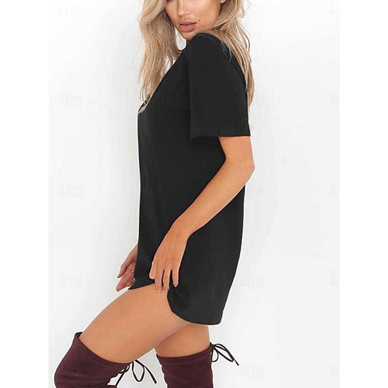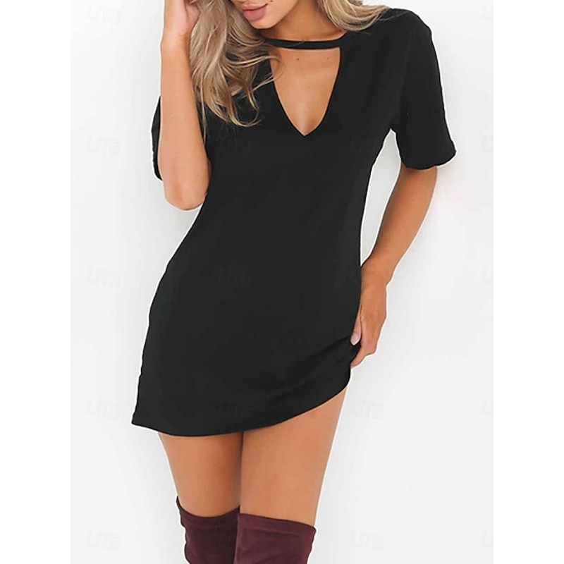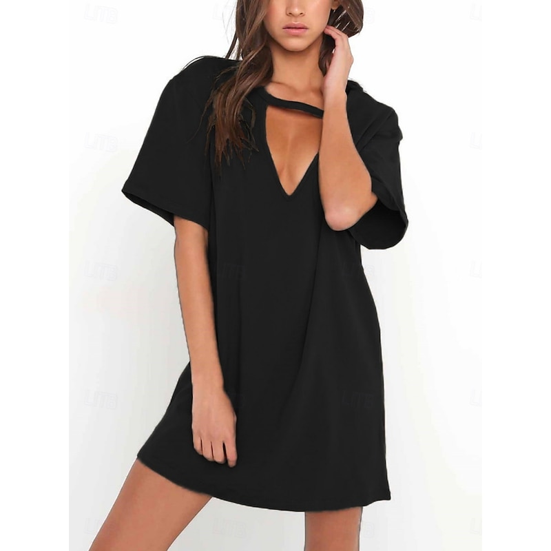 popular ! Women's Mini Dress T Shirt Dress Tee Dress Summer Dress Casual Daily Regular Fit Plain Short Sleeve V Neck Black White Brown Green Summer