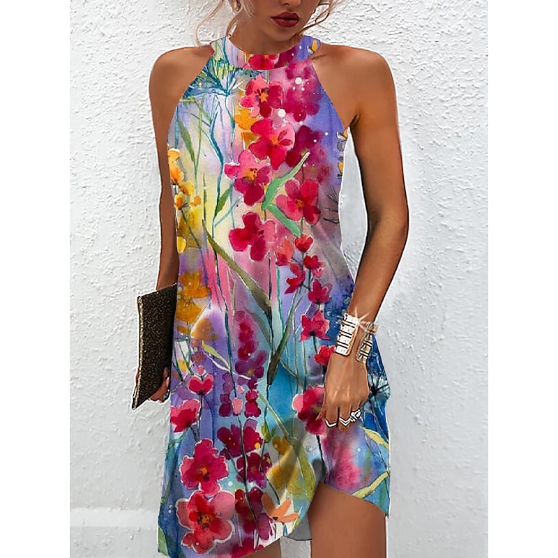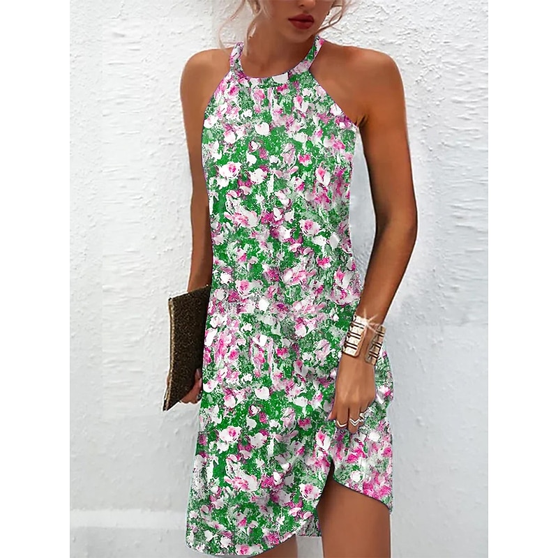 More information about Women's Mini Dress Petite Dress Sundress Summer Dress Halter Neck Dress Active Fashion Streetwear Outdoor Vacation Daily Regular Fit Floral Sleeveless Halter Neck Light Green Royal Blue