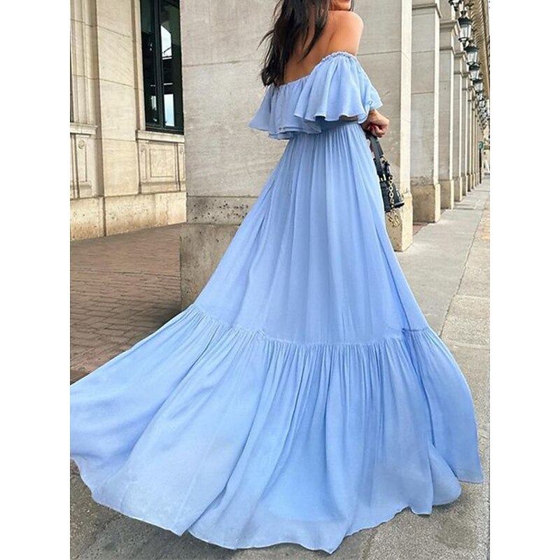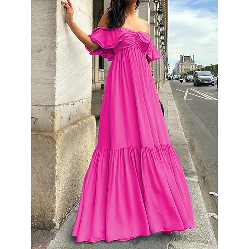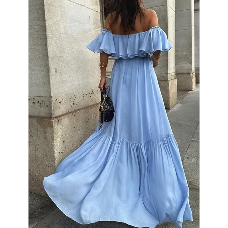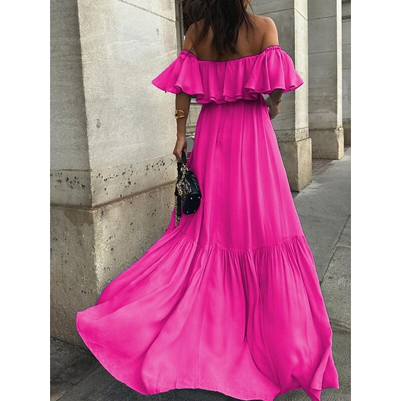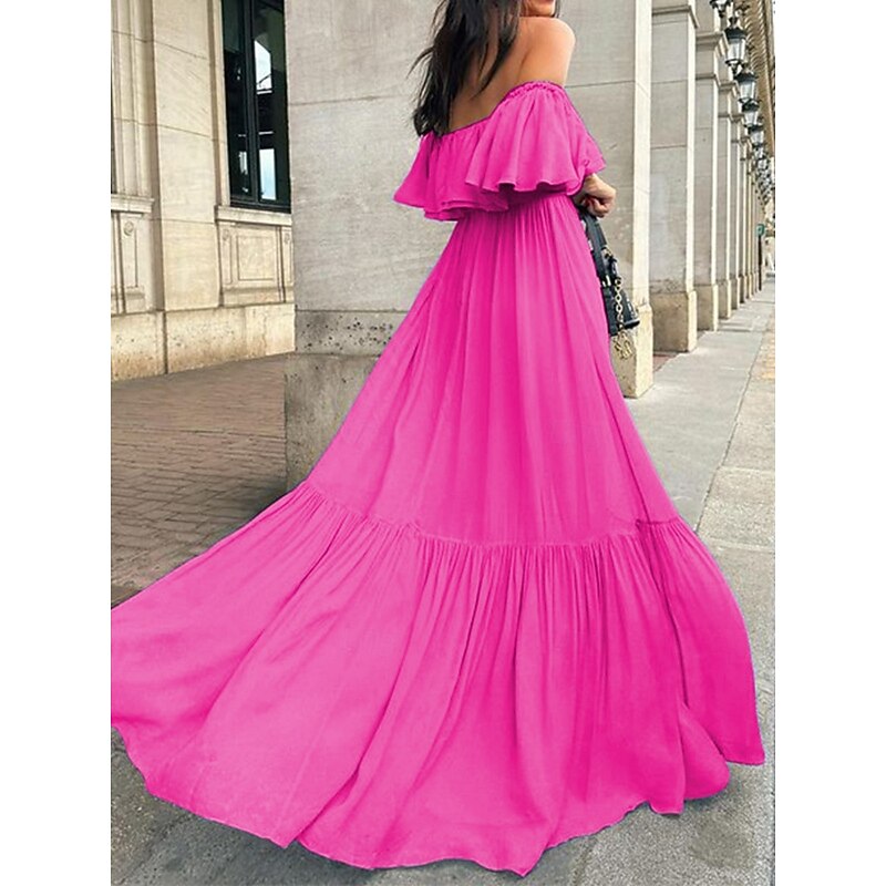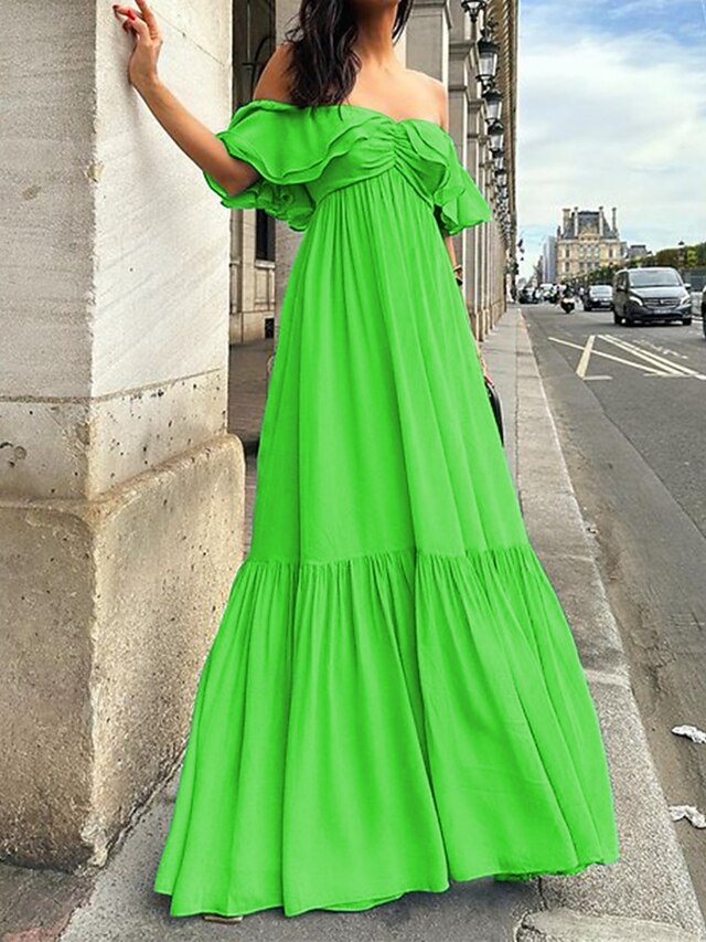 This Women's Casual Dress Maxi Dress Ruffle Backless Casual Off Shoulder Short Sleeve Blue Fuchsia Green Color combines elegant design with practical functionality. Every detail has been carefully considered to ensure you get the foremost possible experience. The supreme construction means this product will serve you well for years to come.