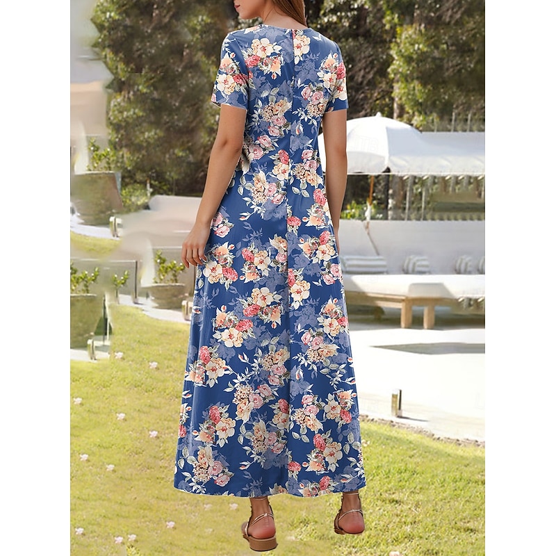 Why Choose Women's Maxi Dress Casual Dress A Line Dress Summer Dress Elegant Vacation Casual Regular Fit Floral Graphic Short Sleeve Square Neck White Pink Blue Summer?