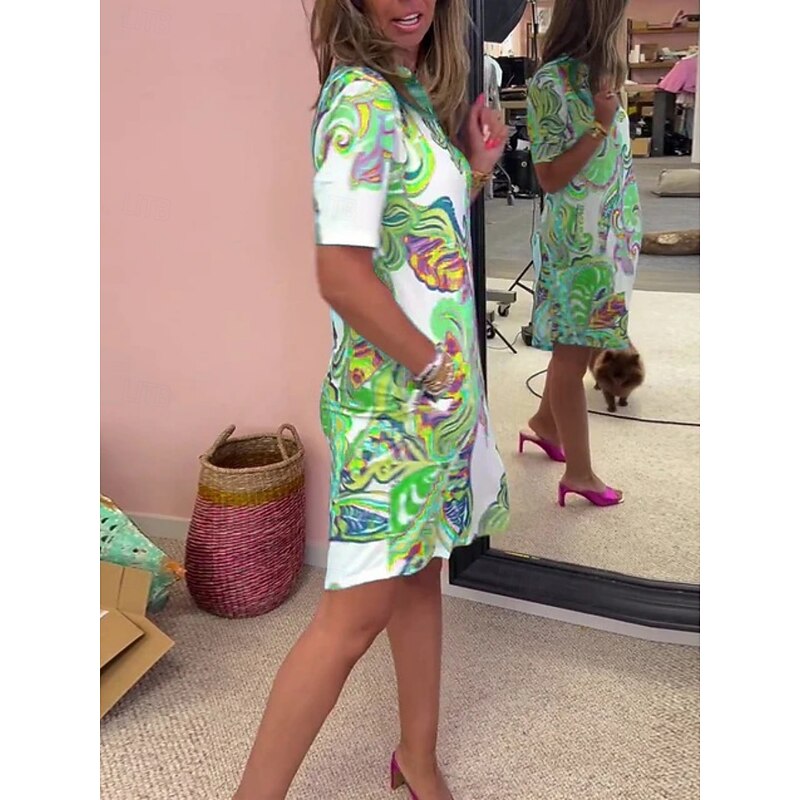 This Women's Mini Dress Casual Dress trendy Casual Vacation Daily Regular Fit Paisley Short Sleeve Notched Neck White Red Blue Green Summer combines elegant design with practical functionality. Every detail has been carefully considered to ensure you get the best possible experience. The excellent construction means this product will serve you well for years to come.
