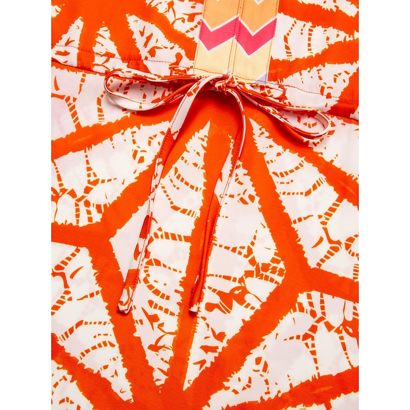 More information about Satin Folk Drawstring Split Neck Midi Dress