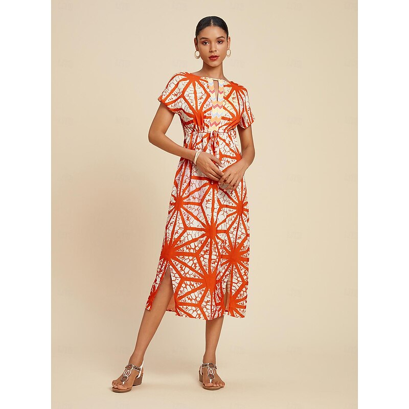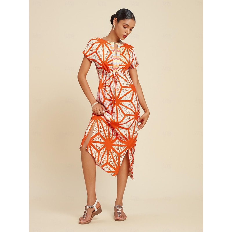 Highlights - chic Short Sleeve design - Specifically designed for Women - Features trendy Drawstring detail - Split Neckline for a flattering look - Sophisticated Midi Dress length