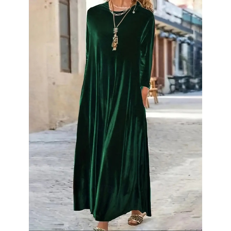 popular ! Women's Maxi Dress Black Dress Graduation Dress Cocktail Dress Formal Dress Party Birthday Formal Wedding Party Office Loose Fit Plain Long Sleeve Crew Neck Black Red Purple Green Spring Fall Winter