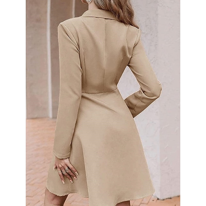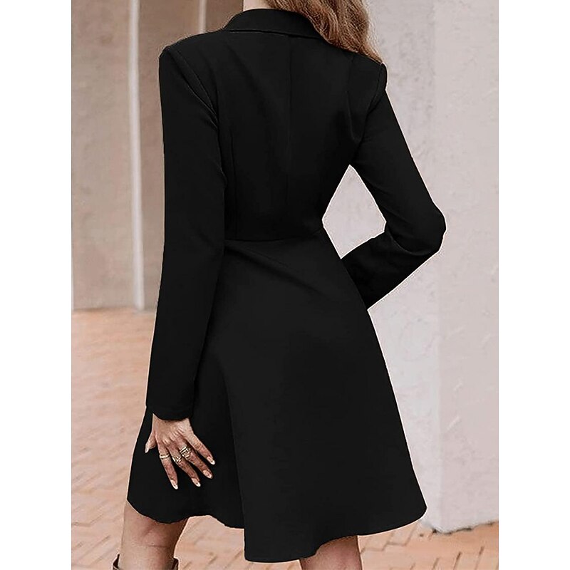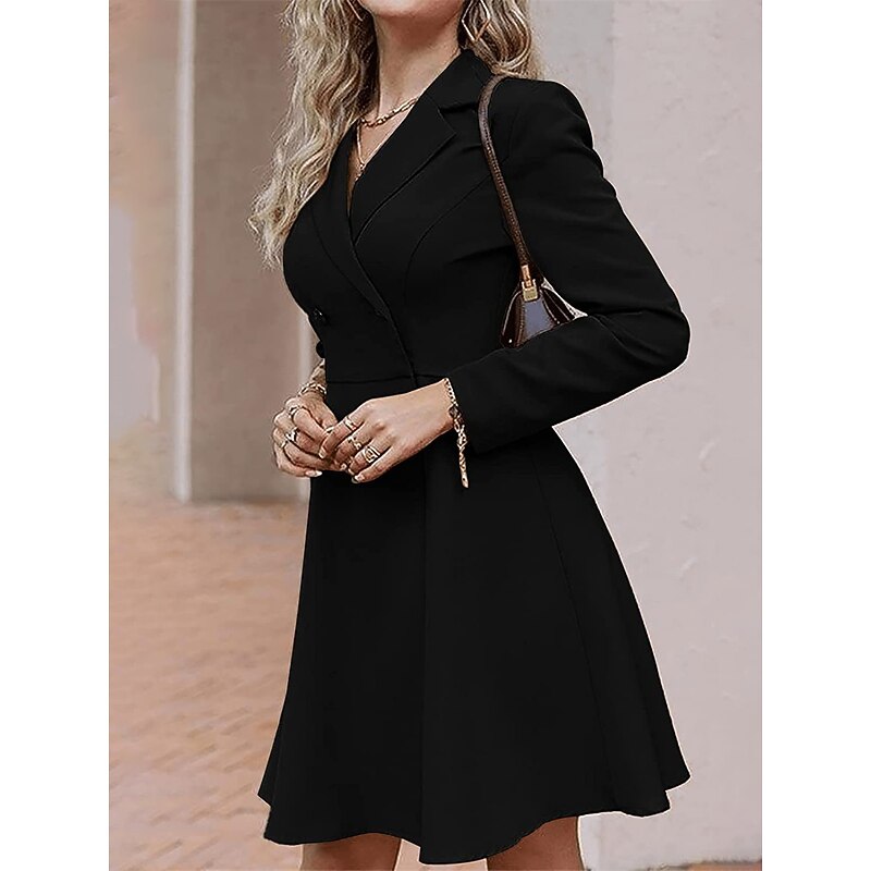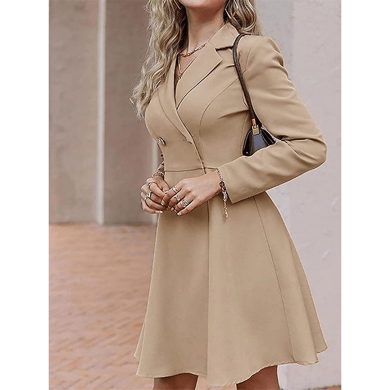 Highlights [Fabric] This dress is crafted from high-quality polyester, offering a smooth and comfortable texture. The micro-elasticity of the fabric ensures a perfect fit while maintaining comfort throughout the day, making it suitable for both formal and casual occasions. [Silhouette] Featuring a flattering A-line silhouette, this dress is designed to complement various body types, providing an elegant and timeless look. The midi length adds a sophisticated touch, suitable for both office settings and social events. [Design Highlights] The dress incorporates a classic double-breasted design with a refined shirt collar, adding a touch of formality and style. The long sleeves are perfect for cooler seasons, and the dress is finished with chic gold-toned buttons that contrast beautifully with the bold blue color. [Occasions] Ideal for a variety of events, this versatile dress can be worn to tea parties, office gatherings, weddings, and other special occasions. Its elegant design ensures that you look polished and confident whether at a formal event or a casual outing. [Sizing] Available in a range of sizes from S to XL, this dress is designed to fit comfortably while maintaining its stylish silhouette. The regular fit ensures that it is suitable for most body types, offering both elegance and versatility. Perfect for everyday use. top-grade materials and excellent craftsmanship ensure long-lasting durability.