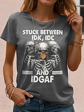 popular ! Women's T Shirt Graphic Skull Letter Vintage chic Casual Short Sleeve Crew Neck Regular Tops Daily Going out Weekend Print Black Blue Green Gray Summer