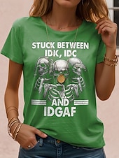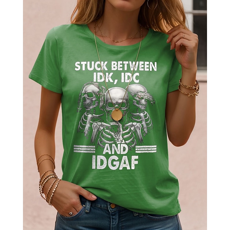 More information about Women's T Shirt Graphic Skull Letter Vintage new-age Casual Short Sleeve Crew Neck Regular Tops Daily Going out Weekend Print Black Blue Green Gray Summer