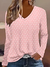 More information about Women's T Shirt Graphic Geometric Polka Dot Vintage sophisticated timeless Long Sleeve V Neck Regular Tops Daily Print Pink Spring Fall Winter