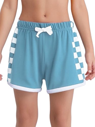 Kids Girls Checkerboard Bowknot Elastic Waistband Plaid Sports Shorts Running Workout Gym Activewear 7