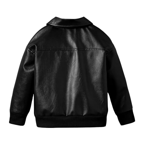 Toddler Boy Leather Jacket - Stylish Black Drop Shoulder Zip Up Leather Coat - Cool Boys Outwear Tops for Kids 5